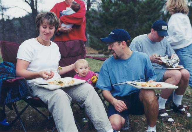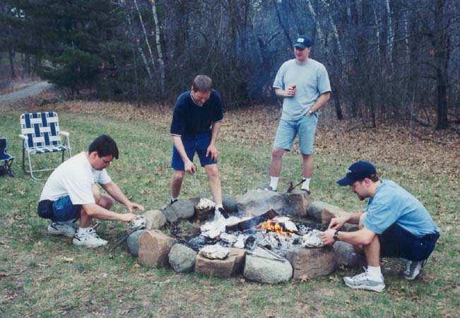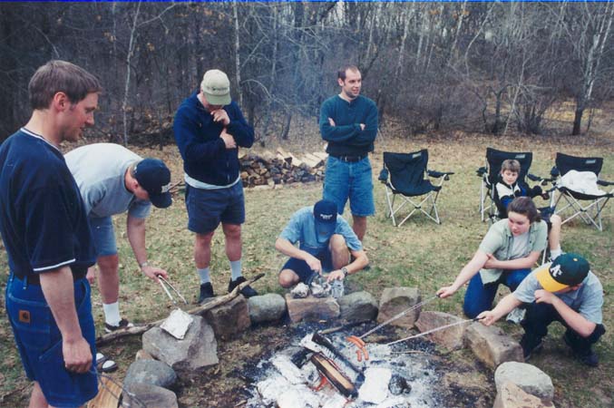 The group at church got their families together for a bonfire.